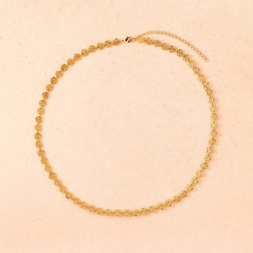 Agapée JewelryUrsprünglicher Preis €155,00 - Ursprünglicher Preis €155,00Ursprünglicher Preis€155,00€155,00 - €155,00Aktueller Preis €155,00| /Diese Halskette besteht aus einer Reihe kleiner, gehämmerter Goldscheiben, die ein durchgehendes Design schaffen, das an antiken Münzschmuck erinne...
