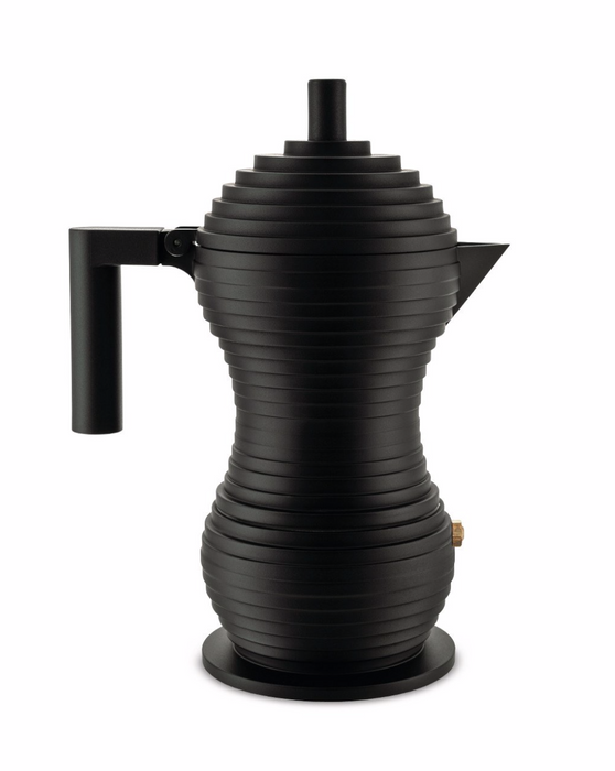 A revolutionary moka that combines the technology developed by illycaffè with the design experience of Alessi. Designed by Michele de Lucchi, the Pulcina incorporates a small but essential design innovation that stops the dispensing of the drink at the right time, before the coffee takes on a bitter aftertaste. This helps to emphasise the full and rich aroma of this drink. The spout, which is reminiscent of a chick's beak (hence the name of the coffee maker), makes it possible to stop the drip perfectly.